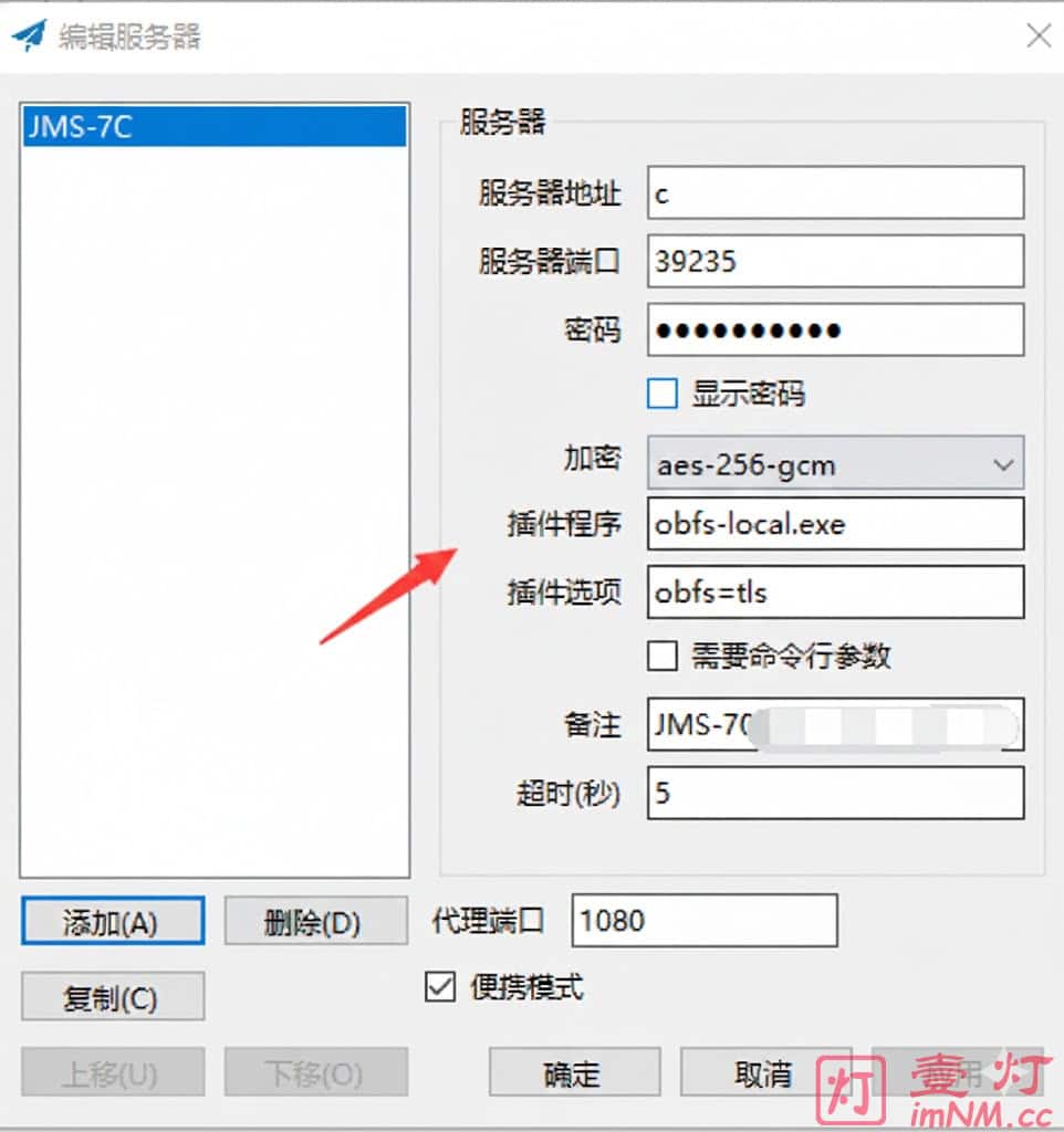 “端口”:填写Just My Socks里的“shadowsocks port”配置的端口。