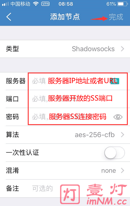 “类型”:选择SS/Shadowsocks适用于第1、2组服务器节点;V2Ray/Vmess适用于第3-6组节点。