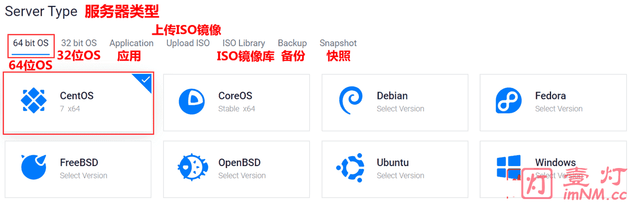 其实,Vultr 可以安装很多种CentOS、CoreOS、Debian、Fedora、FreeBSD、OpenBSD、Ubuntu和 Windows 系统,虽然我个人较喜欢 Debian,但是由于使用 CentOS 的用户最多,所以我这里以安装 CentOS 7 系统为例进行演示。