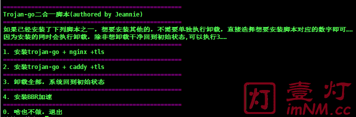 为了更加简单方便地搭建 Trojan-Go 服务器,我们使用傻瓜式Trojan-Go一键安装脚本,是 “Trojan-Go+Websocket+Tls+CDN”2合1一键搭建脚本,只需要按照脚本提示信息一步步操作即可。